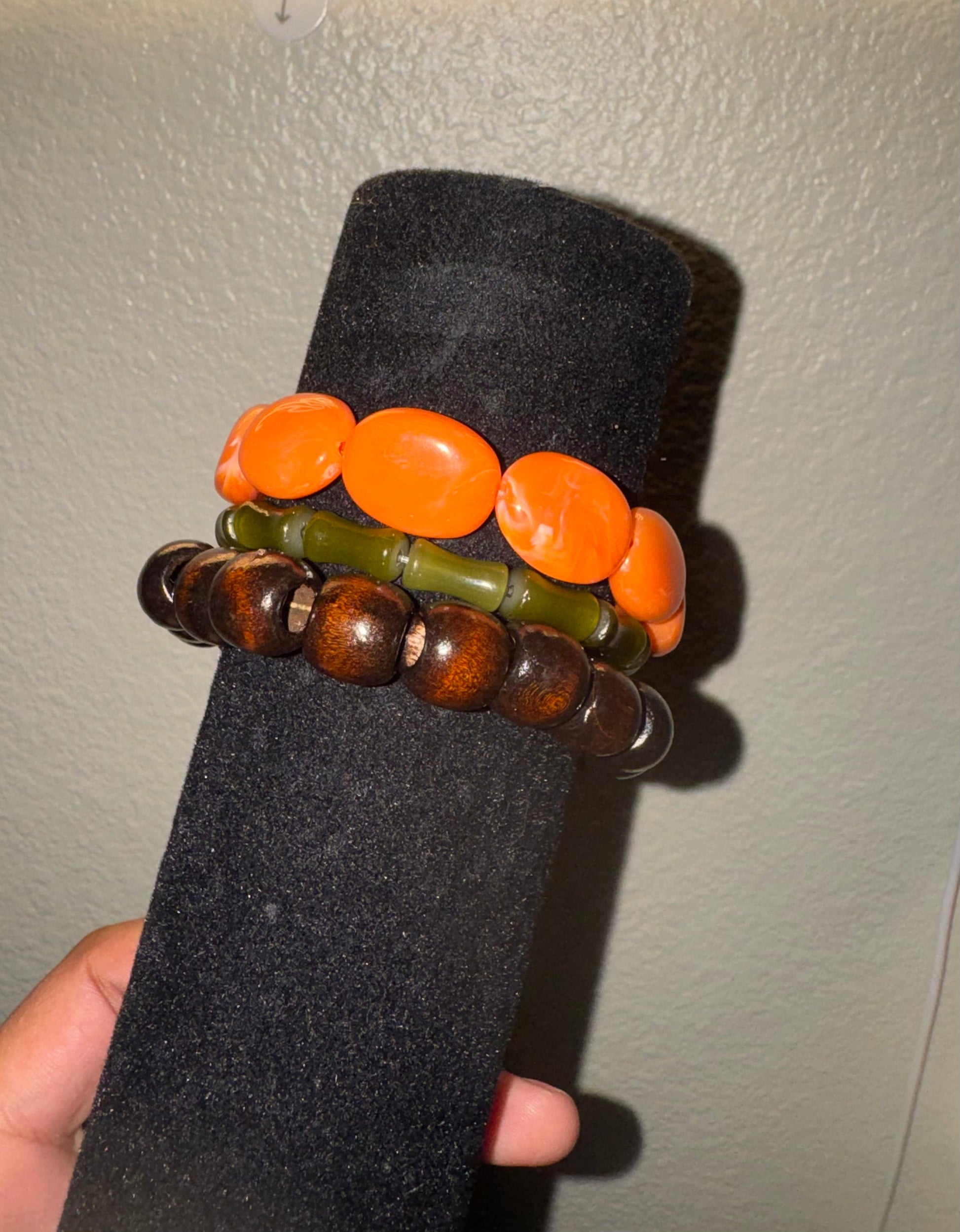 The Grounded stack blends Orange, Deep Olive, and Natural wood beads to channel that earthy girl vibe